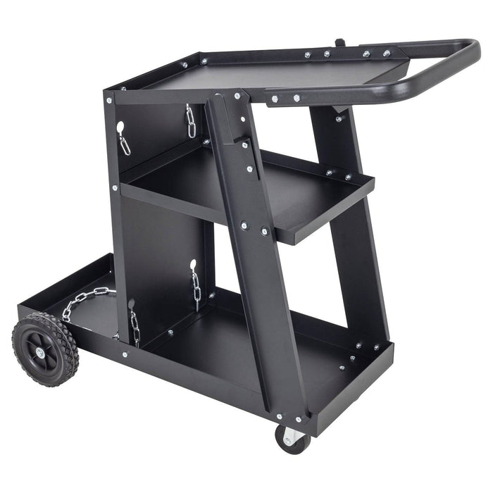 The SIP 3-Tier Welding Cart is designed offer a wheel-mounted solution for welders and accessories, acutely designed to hold larger gas bottles up to 50kg via a rear storage shelf and high-quality load chains plus multiple accessory shelves.